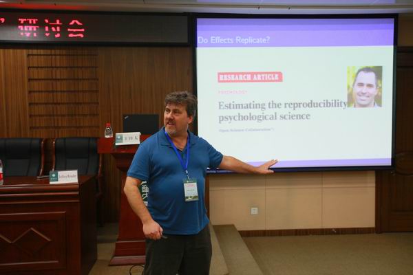 本次会议以“行为分析方法与网络心理研究”为主题。在两天会议期间,美国科学院、美国艺术与科学院院士、印第安纳大学Richard Shiffrin教授,加州大学欧文分校认知科学系、计算机科学系Mark Steyvers教授,密苏里大学Jeffrey Rouder教授,澳大利亚纽卡斯尔大学Scott Brown教授,南开大学乐国安教授,中国人民大学雷雳教授,北京师范大学辛涛教授,中国科学院朱廷劭研究员,我校心理学院刘思耘教授,中国科技大学生科院张效初教授等十余人做了特邀报告;来自全国五十多家科研单位的专家学者围绕网络行为数据分析方法等网络心理研究的核心主题展开了多视角、多层面的交流。10月11日,会议组委会还特邀美国教育考试服务中心(ETS)颜端丽博士举办了“贝叶斯网络在教育测量中的应用”工作坊,受到师生们的热烈欢迎。