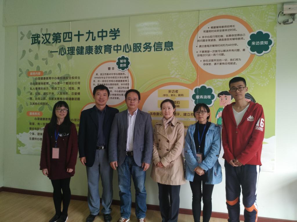 首先,在曹非老师与实习生的引导下,孙院长与熊老师参观了一下武汉市第49中学的心理健康教育中心。了解了实习生的工作环境,孙院长感慨实习生的工作环境设备很全,且赞赏武汉市第49中学在心理健康教育上的重视,殷切地询问实习生是否已经会操作心理健康教育中心配备的仪器,谈到在学习设备上要学会主动,多向曹非老师请教。